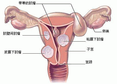 注:子宮肌瘤常為多發性,并且以上不同類型肌瘤可同時發生在同一子宮上,稱為多發性子宮肌瘤。